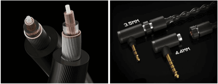The Project Ace earphone cable takes a unique approach to sound quality through a combination of different cable types. It uses both coaxial shielded and twisted balanced cables, along with a special Litz type5 coaxial braided cable. This isn’t just a mishmash of wires – the eight cores are a complex design that blends copper and copper silver-plated cores in a specific ratio. This combination aims to reduce internal resistance, which in turn leads to improved sound separation and overall clarity.