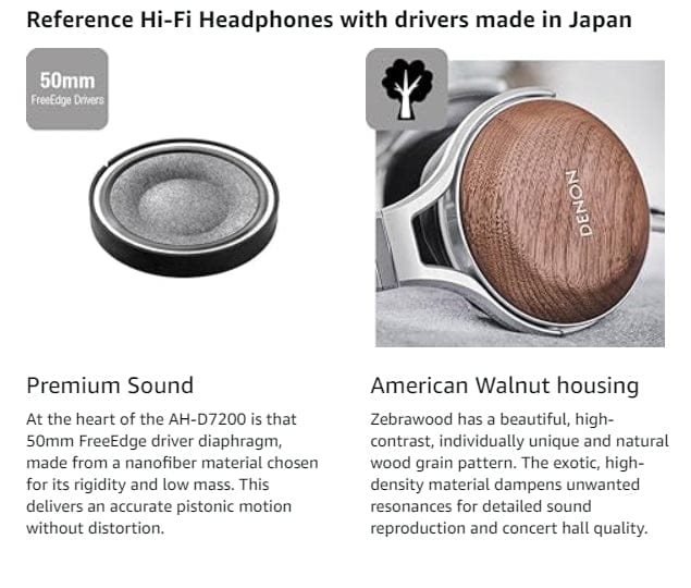 These premium headphones use our unique, Japanese-made FreeEdge drivers, which deliver a precise pistonic motion for ultra-accurate sound with minimal distortion. The beautiful walnut ear cups enhance the sound experience further.